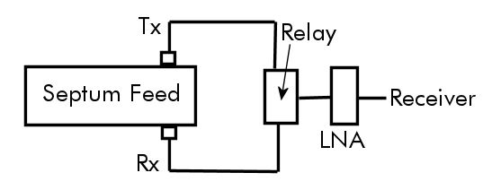 Most systems will have an isolation relay which switches the input to the LNA from the RX port to a 50ohm load. Most systems will have (or should have) the ability to do this switching manually in order to measure the ratio of sky noise to 50ohm noise (an important parameter in system optimization). So you simply remove the 50 ohm load and replace it with a connection to the Tx (RHCP) port. The you can switch between LHCP (rx port) and RHCP (Tx port) and compare the decode strength of a signal (e.g. a station calling CQ) on the two ports. IMPORTANT - to make the measurements easier and avoid the need for corrections, the connection the both ports from the relay should be as similar as possible in terms of loss. That ideally means the same length of the same type of coax with the same connectors and a minimum of adapters. So the setup would look something like this: